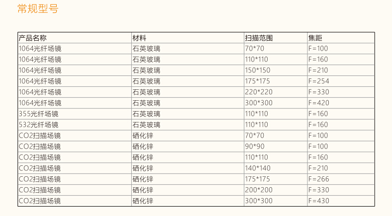 掃描場鏡,是一種專業(yè)的透鏡系統(tǒng),目的是將激光束在整個(gè)打標(biāo)平面內(nèi)形成均勻大小的聚焦光斑,以解決打標(biāo)系統(tǒng)中激光束穿過聚焦透鏡系統(tǒng)后會(huì)產(chǎn)生離軸偏轉(zhuǎn)現(xiàn)象,是激光打標(biāo)機(jī)的最重要配件之一。