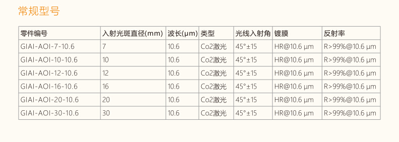 4、具有高反射涂層,適用于YAG激光器、CO2 激光器。