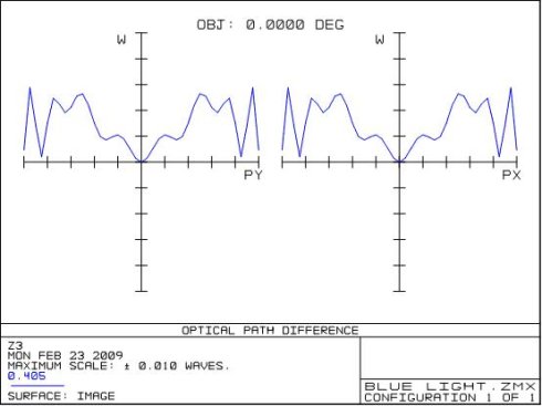 一、性能指標 光學總長:4.07mm NA:0.8 入瞳直徑:4mm 結(jié)構:1G1P OPD:<0.01waves